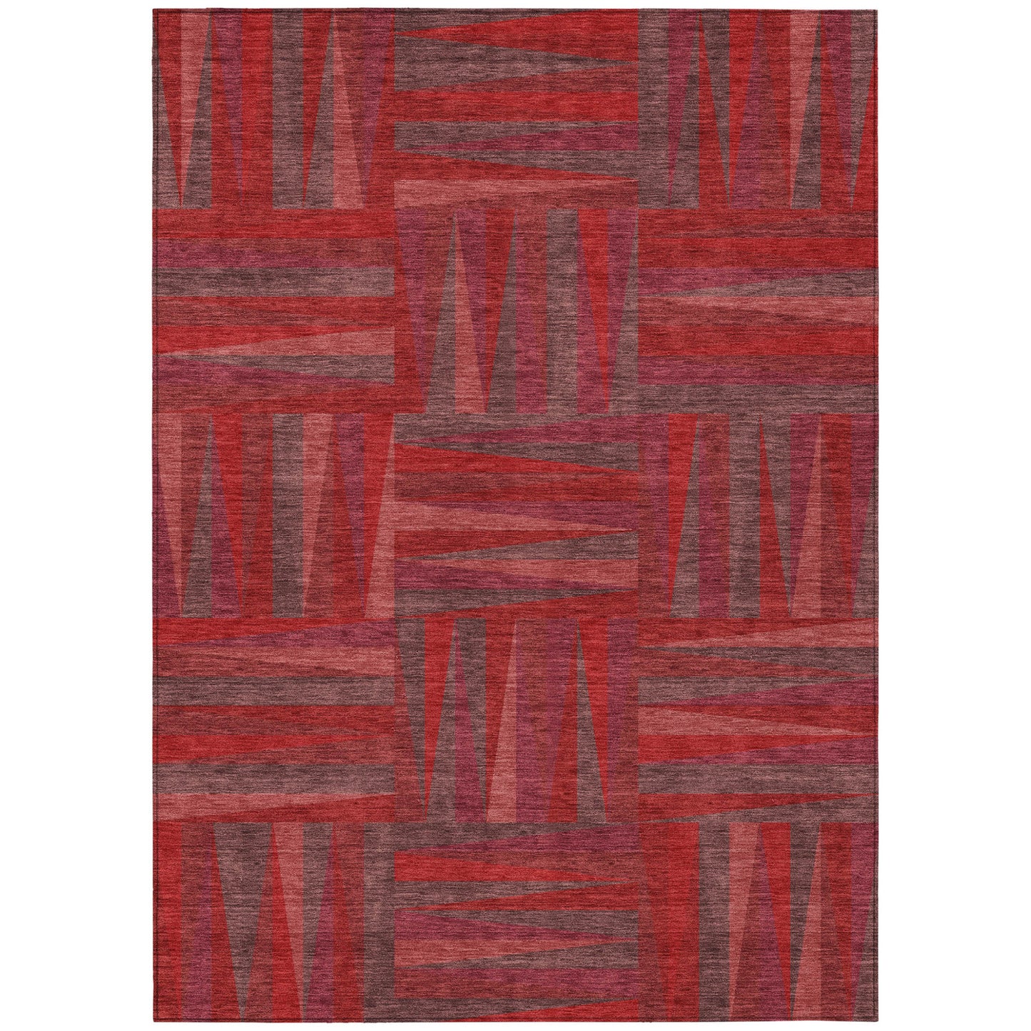 8' X 10' Red And Brown Geometric Washable Indoor Outdoor Area Rug