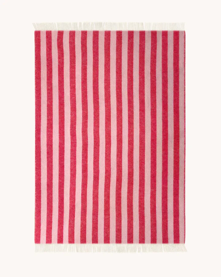 The CANDY WRAP Blanket is woven and certified with the Woolmark and OEKO-TEX label. Wool is 100% biodegradable and therefor does not contribute to microplastic pollution in oceans or on land. Wool is a circular fibre. It's 100% natural, 100% renewable and 100% biodegradable.