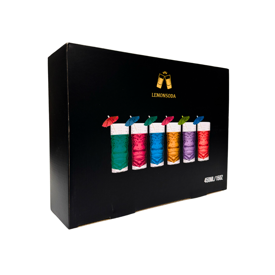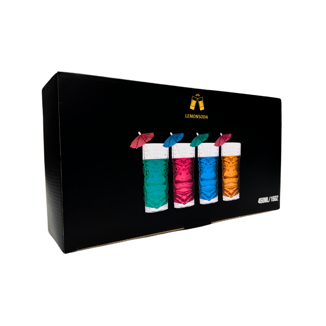 - Strong lines and defined angles in the tiki face are designed to catch your eye. Every drink you make will look sharp and luminous in these tall cocktail glasses.