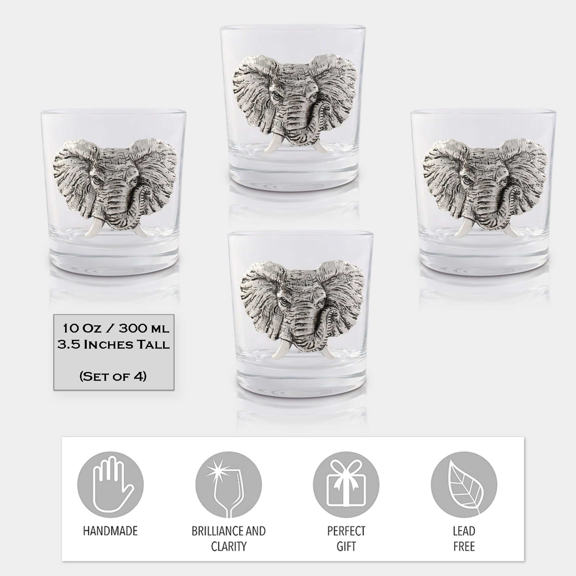 Introducing the Bar Glasses Set of 4 with Metal Elephant attached - a perfect blend of exotic charm and timeless elegance for your home bar, entertainment space, or glassware collection. These unique glasses showcase a beautifully crafted Metal Elephant, adding a touch of wildlife-inspired style to every sip.