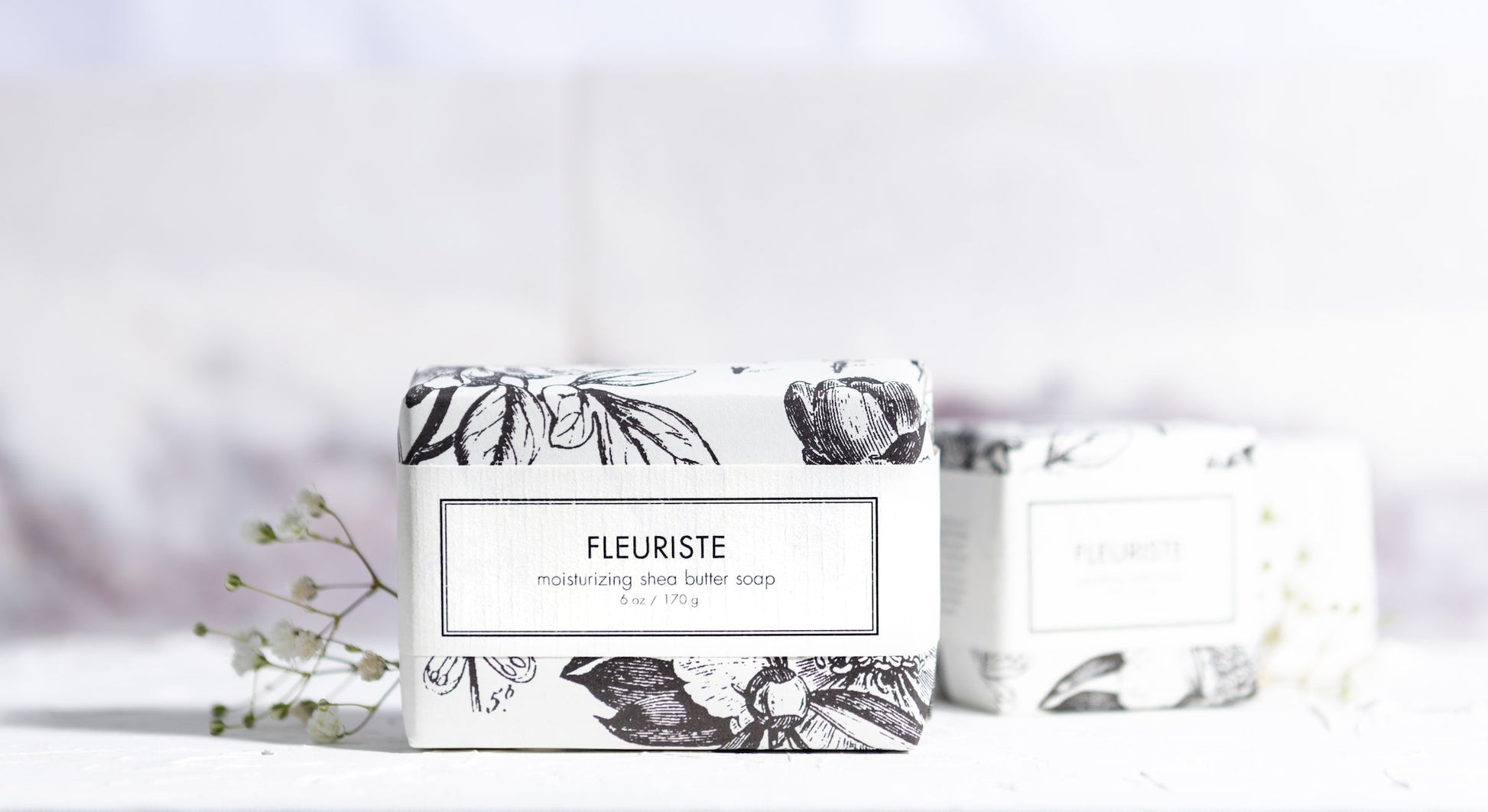SIZE/DESCRIPTION: 6+oz. Fleuriste shea butter bath bar packaged in our signature botanical and vintage illustrations.