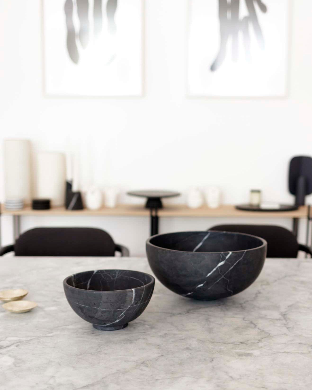 This artisanal black marble collection brings subtle elegance to any home decor. Hand-carved bowls feature a minimalist design, creating a beautiful and refined look. The perfect home accessory, these bowls provide a luxurious, elevated touch to interior design.