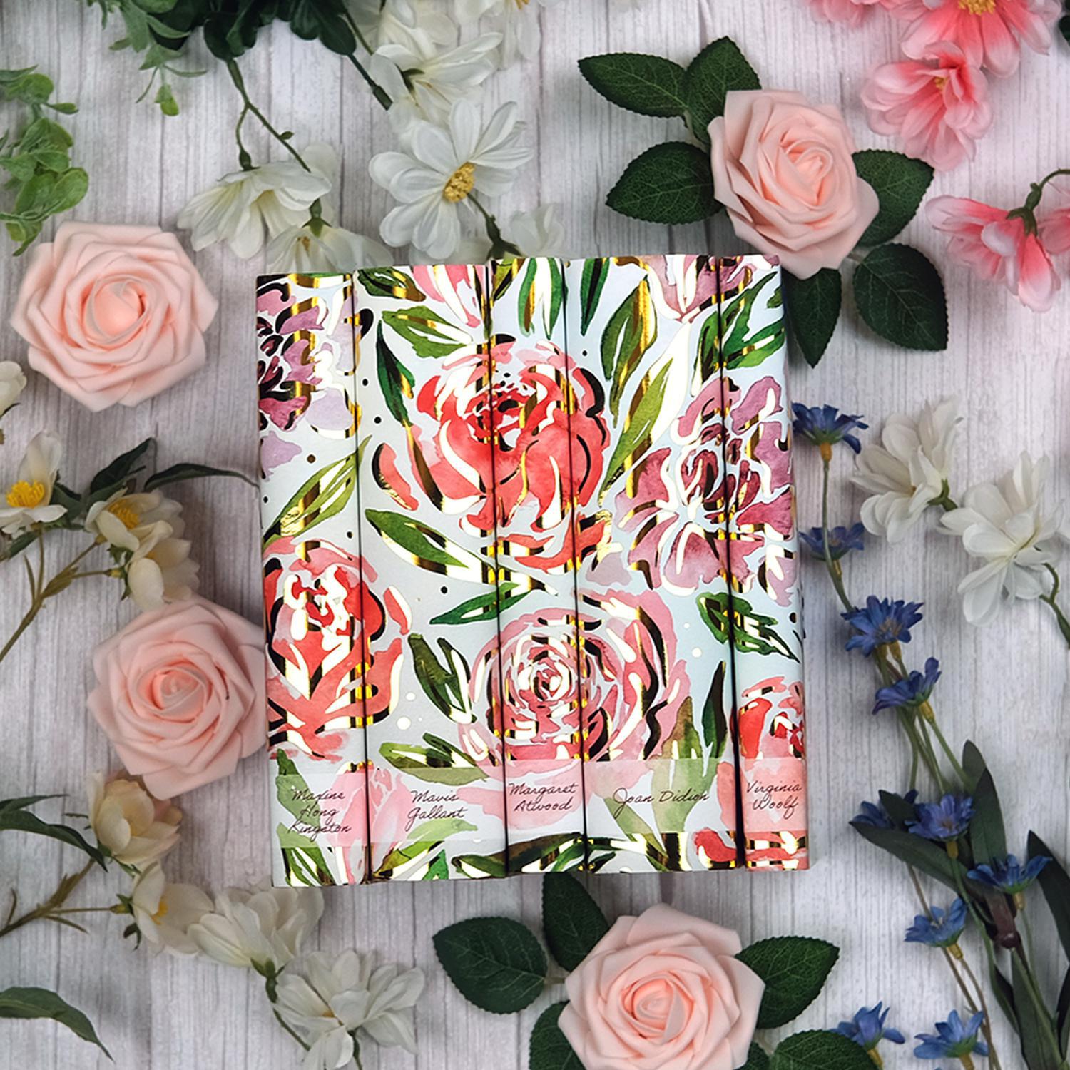 Delicate watercolor-style florals embellish the spines, then pop with luminous foil accents. This exclusive set consists of five hardcover books published by Everyman’s Library, authored by some of the most influential and beloved women authors of our time. Available with a luxurious printing of gold foil-accented covers, this set makes an elegant, classic, and meaningful gift for the women who have shaped our lives.