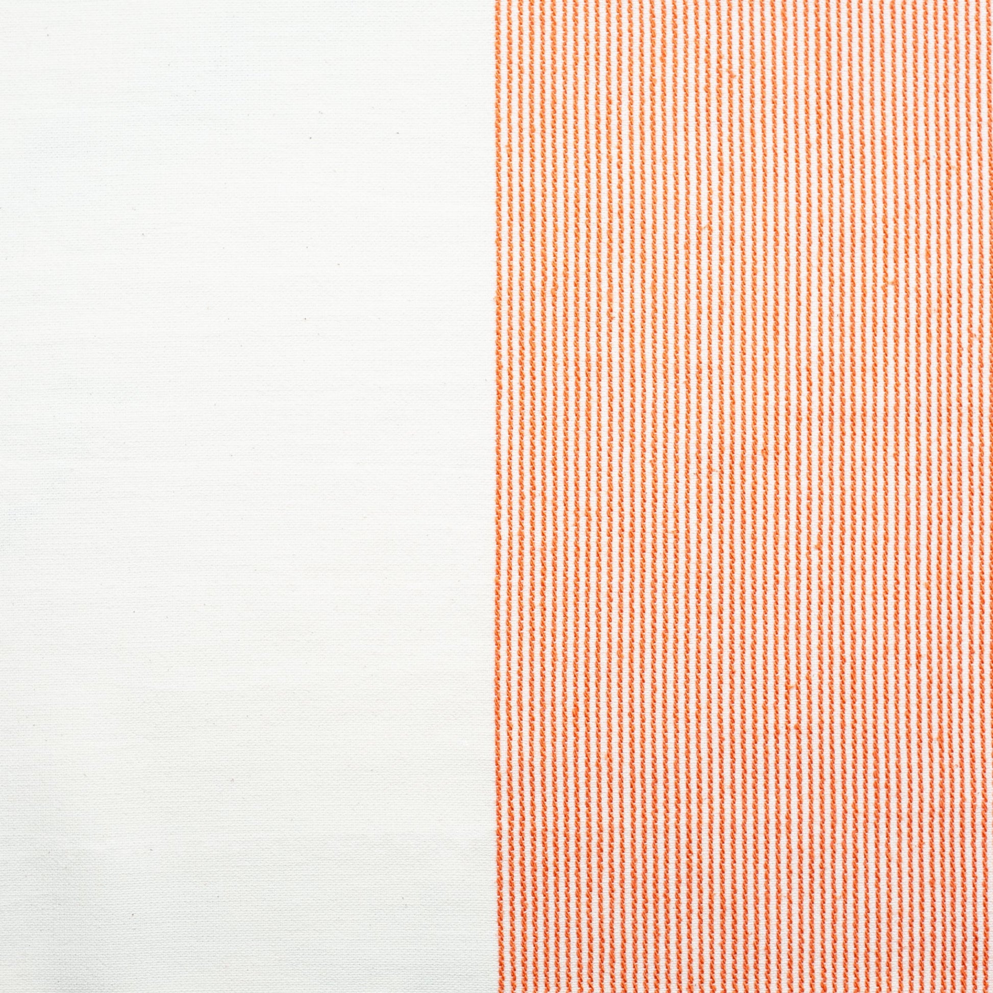 Our Stripe Collection tablecloth is woven from natural, washed cotton with a persimmon-colored center stripe. The unique weave highlights the heart of the table, drawing attention to the setting, food, and conversation. 100% Cotton. Finished with mitered corners. Made in Turkey. Available in two sizes 60 X 84 (seats 6 to 8) and 60 X 120 (seats 10 to 12)