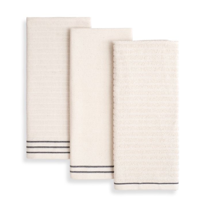We developed a collection of specialized towels to suit the most common kitchen needs. Just like you wouldn't want to have just one knife in your kitchen but rather a kit of useful knives, we present the Towel Kit with three distinct and unique tools to get any job done in the kitchen. Note: 100% cotton textiles may shrink after washing. Follow care instructions for optimum results.
