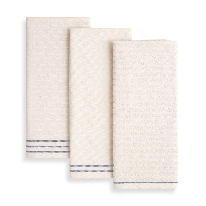 We developed a collection of specialized towels to suit the most common kitchen needs. Just like you wouldn't want to have just one knife in your kitchen but rather a kit of useful knives, we present the Towel Kit with three distinct and unique tools to get any job done in the kitchen. Note: 100% cotton textiles may shrink after washing. Follow care instructions for optimum results.