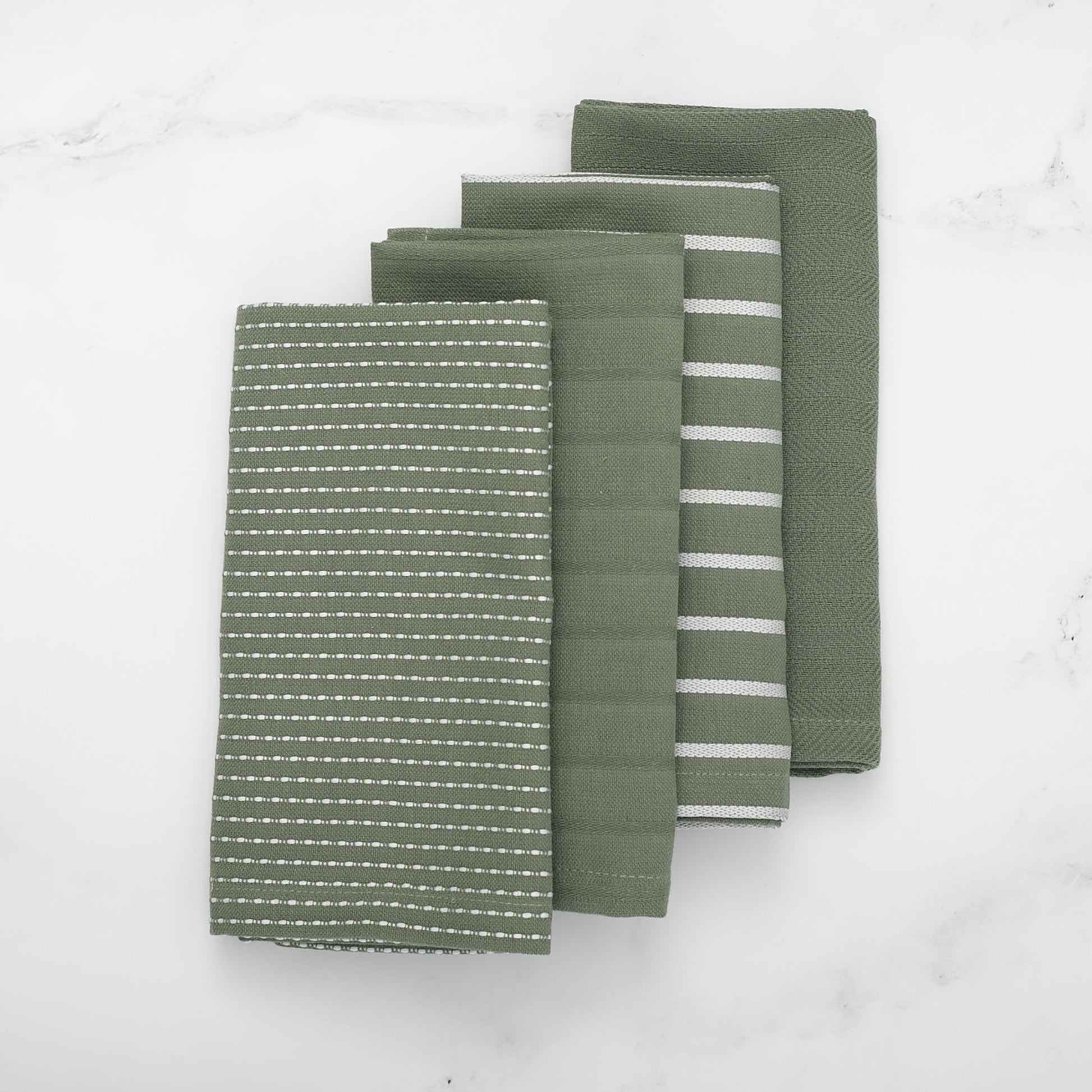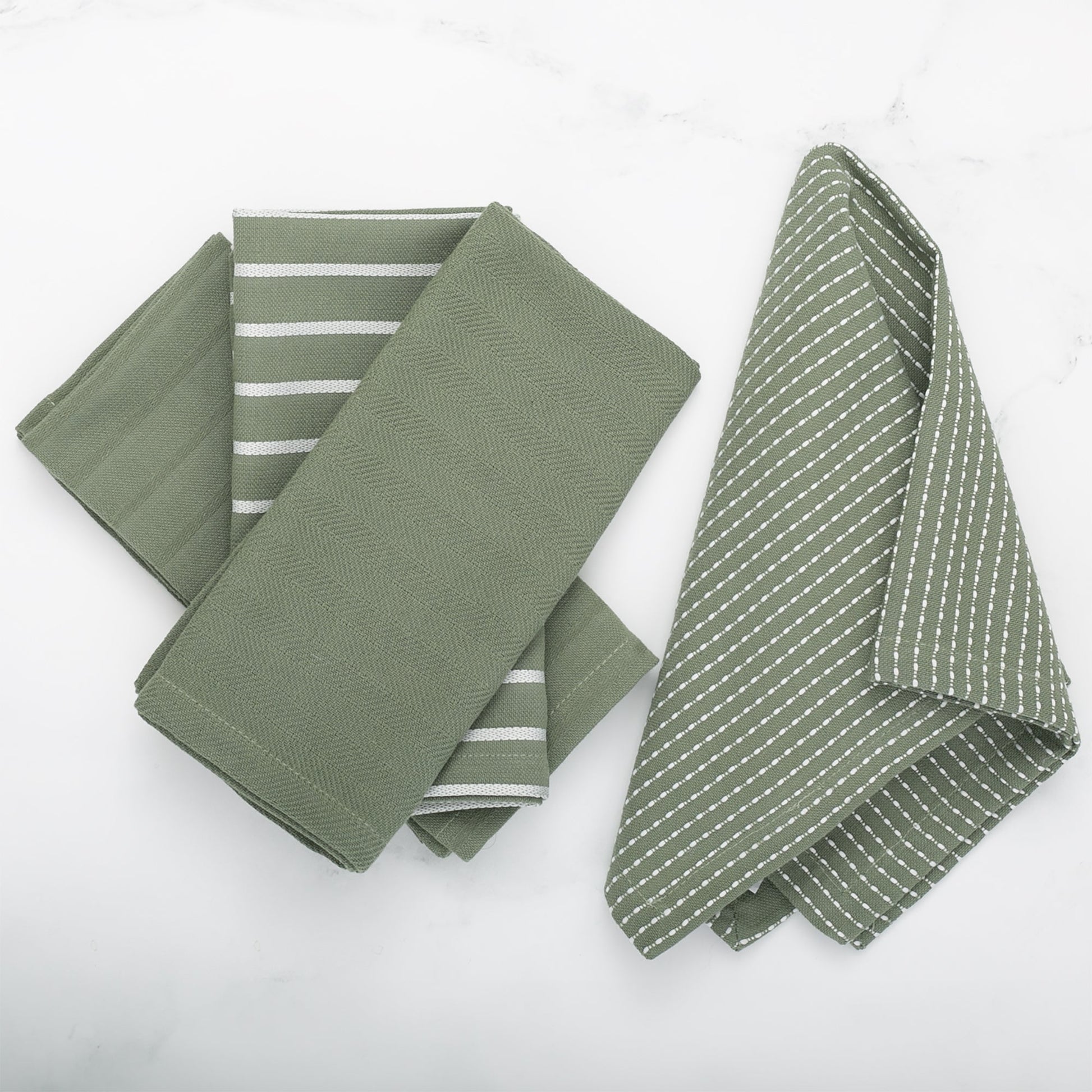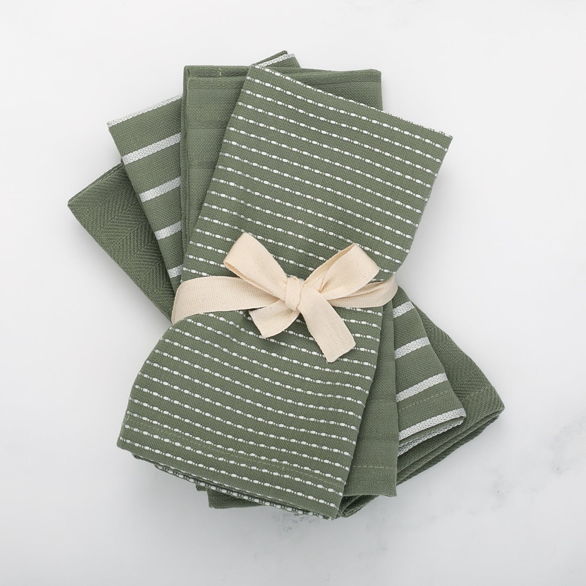 To Each Their Own napkin set- Kale & White. Our mix and match set has four coordinating textures in one set so that each diner has their own unique pattern. This is an elegant and fun way to make everyone at the table feel special. Set of 4, 18”x18" 100% cotton exclusive of decoration. Woven in Turkey